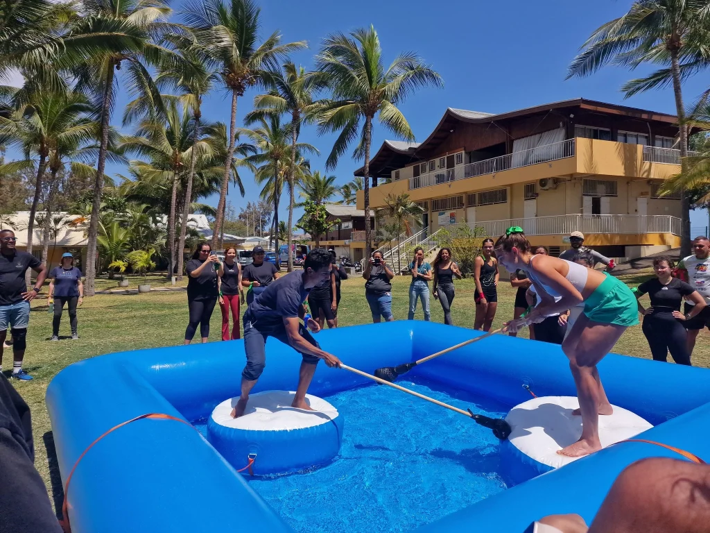 Prêt à relever le défi ? Enfilez votre tenue de gladiateur et affrontez vos adversaires sur une arène aquatique gonflable. Entre équilibre, stratégie et défis ludiques, cette animation dynamique est idéale pour team building, fêtes ou événements publics, offrant des moments fun, immersifs et mémorables pour tous les participants.
