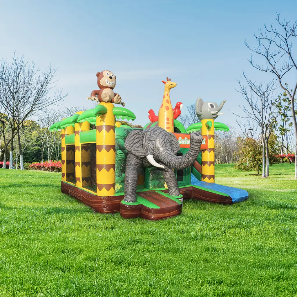 Parcours multi-activité pour enfants : ils sautent et s’amusent pendant des heures en toute sécurité. Des animaux de tous les continents décorent la structure et les jeunes visiteurs profitent de plusieurs zones de jeu : toboggan, obstacles et trampoline, pour un maximum de sensations.